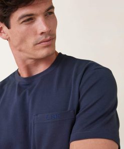 Le Slip Français Men’s Navy Blue Cotton T-shirt With Chest Pocket – Sasha Marine | Blue | Men’s Clothes
